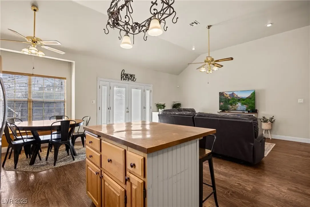 - Interior FeaturesBedroom on Main Level, Ceiling Fan(s), Primary Downstairs, Pot Rack