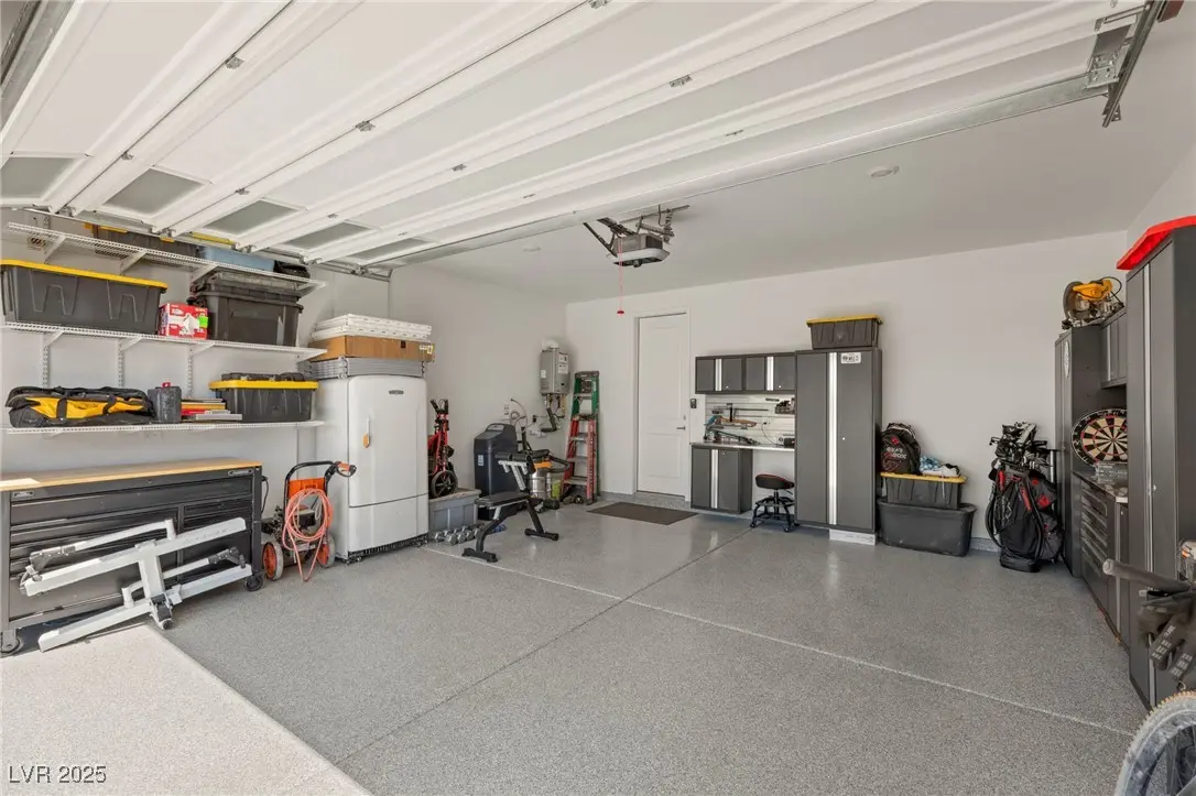 - ParkingAttached, Epoxy Flooring, Finished Garage, Garage, Inside Entrance, Private, Shelves, Storage