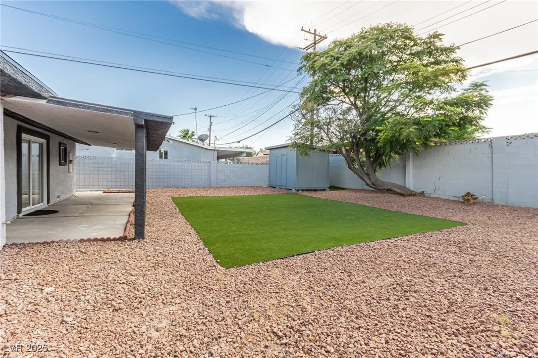 - Exterior FeaturesPatio, Private Yard, Shed