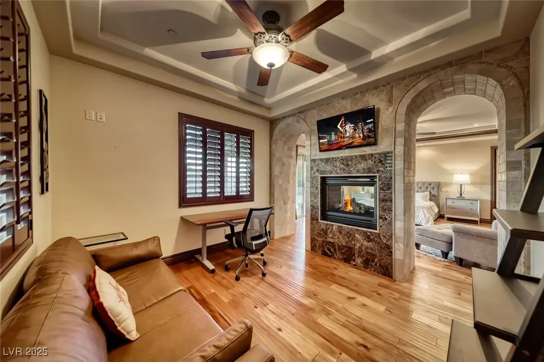 - FireplacesGas, Living Room, Primary Bedroom, Multi-Sided, Outside