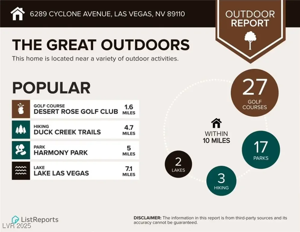 This located at 6289 Cyclone Avenue. This property is currently zoned for Keller middle school and Eldorado high school. 6289 Cyclone Avenue has 6 beds, 3 baths and is approximately 3,010 square feet. Listed by Wynn Realty Group for $610,000, the price per square foot is $203. The property has a lot size of 0.20 acres and was built in 2005. 6289 Cyclone Avenue is in Las Vegas, NV.
